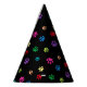 Celebrate your pet's birthday with this cute and colourful animal paw print patterned party hat. The background of this design is transparent so you can change the black background colour to your favourite.