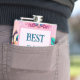 The flask itself is fine. It’s a cheap flask, obviously bought in bulk, however am prepared to overlook that. Given that it is a personalized item, I would have liked to have seen gift boxing instead of the generic packaging. Terrible printing, and/or quality. It’s a cheap, tacky vinyl. It is not cut straight and is also applied in a way that it is overhanging the bottom, causing the glue to catch on items and it will eventually roll and tear, damaging the wrap.