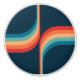 Retro style double arches geometrical pattern illustration with turquoise, blue, red and beige stripes decoration on dark blue background.