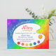 Painting parties are so much fun and this invitation is the perfect way to set the mood for your art party. this design features a paint palette on a rainbow background. All text on the palette can be edited to fit your event.