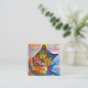 Colourful Artistic Cute Pet Cat Portrait Template Square Business Card