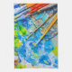 Image of a colourful painting palette, a number of brushes and a palette knife. Blue and green colours prevail. Beautiful vibrant one-of-a-kind kitchen or hand, or feet towel for anyone.