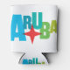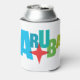 Aruba text in colourful tropical colours of the island with the 4 pointed red star of the country's flag.