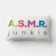 Are you an ASMR junkie? You can feel the tingling sensation induced by sounds with your head on this pillow. It has a white and a black side, both has the rainbow colour text on it saying "ASMR junkie".