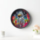 Colourful Astronaut in Space with Flowers Artwork Clock