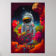 Colourful Astronaut in Space with Flowers Artwork Poster