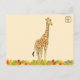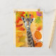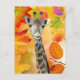 Pic of a Silly looking giraffe with some fall leaf illustrations put together to make a beautiful and unique postcard.