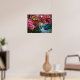 Accent a living space with this colourful, photographic poster print featuring the photo image of a forest garden walk with brilliant, red maple leaves during the autumn season. A stunning, botanical image! Select your poster size and other options as desired.