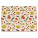 This design showcases a lively autumn-themed pattern featuring a variety of colourful leaves and acorns. The background is a light cream colour with subtle speckles, adding texture and depth to the design. The pattern includes maple leaves in vibrant shades of red, yellow, and orange, along with other leaves in warm browns, muted greens, and soft pinks. Scattered among the leaves are small acorns and clusters of berries, enhancing the fall ambiance. The arrangement is both whimsical and balanced, capturing the cosy and festive spirit of the autumn season.