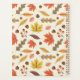 This design showcases a lively autumn-themed pattern featuring a variety of colourful leaves and acorns. The background is a light cream colour with subtle speckles, adding texture and depth to the design. The pattern includes maple leaves in vibrant shades of red, yellow, and orange, along with other leaves in warm browns, muted greens, and soft pinks. Scattered among the leaves are small acorns and clusters of berries, enhancing the fall ambiance. The arrangement is both whimsical and balanced, capturing the cosy and festive spirit of the autumn season.