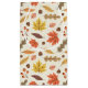 This design showcases a lively autumn-themed pattern featuring a variety of colourful leaves and acorns. The background is a light cream colour with subtle speckles, adding texture and depth to the design. The pattern includes maple leaves in vibrant shades of red, yellow, and orange, along with other leaves in warm browns, muted greens, and soft pinks. Scattered among the leaves are small acorns and clusters of berries, enhancing the fall ambiance. The arrangement is both whimsical and balanced, capturing the cosy and festive spirit of the autumn season.