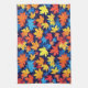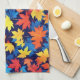Colourful Autumn Leaves On Dark Blue Background Tea Towel
