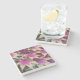 The coasters are gorgeous, a quality feel and heavy weight. They look like a precious archeological find. A rustic stone juxtaposed with a modern floral black and white print. I like the way the print goes slightly imperfect on the cut stone edges giving them a kind-of natural beauty.