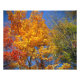 Beautiful and scenic image of fall trees in orange, yellow and green against a vibrant bright blue daytime sky. Perfect photographic print for any home or office to bring the outdoors inside. Add your choice of frame and/or mat.