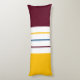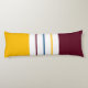 This modern body pillow features a colourful autumnal pattern in mulberry purple, amber yellow, and white stripes.