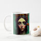 The Colourful Awakened Princess Mug features an Artificially Intelligent artist who was asked to produce the base image of a Princess awakened, the artist has completed the work of art by hand.