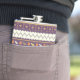 The flask itself is fine. It’s a cheap flask, obviously bought in bulk, however am prepared to overlook that. Given that it is a personalized item, I would have liked to have seen gift boxing instead of the generic packaging. Terrible printing, and/or quality. It’s a cheap, tacky vinyl. It is not cut straight and is also applied in a way that it is overhanging the bottom, causing the glue to catch on items and it will eventually roll and tear, damaging the wrap.
