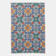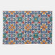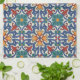 Colourful watercolor azulejos ceramic tiles pattern on a white background.