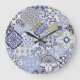 Colourful Azulejos tiles: hand-drawn pattern. Large Clock