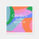 These personalised baby shower napkins add a bold, modern pop of colour to your celebration. The abstract, retro-inspired design features layered curves in bright, cheerful hues with custom text for the guest of honour and event date. A fun and practical detail for serving drinks, desserts, and snacks, they help tie your baby shower decor together effortlessly. Perfect for hosts who want something playful, stylish, and memorable for their party tables.