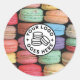 Add your logo to this macaroon sticker for your bakery business or confectionery. Use on packaging, thank you notes, orders and more! These sweet French meringue-based confections are filled with a tasty centre to create a deliciously sweet cookie sandwich. This stacked rainbow of colours signifies different flavour treats! This image has a slight ‘painted’ feel to it when you look closely. Colourful Cookie Macaron Bakery Business Your Logo Classic Round Sticker