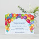 A festive party invitation with arch of colourful balloons on light blue background. Just personalise the text with your party details.  Suitable for any age or gender.