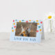 Colourful red, green and yellow-orange falling balloons on a pastel blue background, your custom photo and text making a cute pretty greeting card for your dad! ++++++++++++ Personalise it with your photo and text on front and inside.