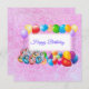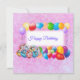 Cute, colourful balloons on pink structure background, with text in the white banner...Happy Birthday...On the back is the same pink background. You can easily personalise with your choice of text.