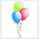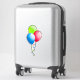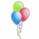 Brightly coloured balloons with decorative ribbons, creating a cheerful and festive atmosphere against a black backdrop.