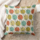 Illustrated balls of wool in polka dot pattern on colourful, quirky throw cushions.