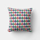Red, green and blue cute bauble pattern on festive Christmas cushion.