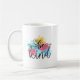 This cute coffee mug features a whimsical heart and a colourful paint splash in shades of blue, yellow, pink and green along with trendy text that reads: be kind.