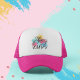 This cute tgrucker hat features a whimsical heart and a colourful paint splash in shades of blue, yellow, pink and green along with trendy text that reads: be kind. Add a splash of colour to your wardrobe with this cute inspirational hat.