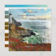 Wedding invitation featuring a painting of a lighthouse on a cliff at the ocean in vibrant colours. Perfect for a beach or destination wedding. This invitation has a matching RSVP card.