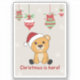 The yellow bear on Christmas with fairy lights. Funny animals with gifts and snow for the holidays. Also funny for Christmas in July. Bears are cute animals and perfect for Christmas.