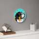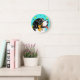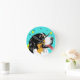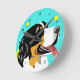 Bernese Mountain Dog art on wall clock with with yellow circles and a background colour that you can customise.