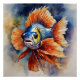 A Colourful Betta Fish is a detailed watercolor with expressive eyes is portrayed against a soft, blurred background. The natural colours enhance the lifelike appearance.