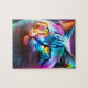 Colourful Big Cat With Rainbow Colours Neon Lights Jigsaw Puzzle