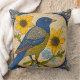 Colourful illustration of a bird perched on a branch, surrounded by yellow flowers and blue daisies. The artwork features a dotted pattern and a harmonious blend of blue, yellow, and earthy tones, creating a cheerful and lively composition.