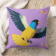 Stylised depiction of colourful bird flying gracefully with a bright violet backdrop, exuding joy and creativity.