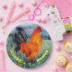 Great for Easter or countryside events. They feature a chicken on a farm, a colourful bird from my original glass painting. This artwork is easily customized for your occasion. ©Annabel Potter