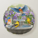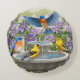 Colourful Birds and Bird Bath Flower Garden Round Cushion