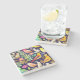 The coasters are gorgeous, a quality feel and heavy weight. They look like a precious archeological find. A rustic stone juxtaposed with a modern floral black and white print. I like the way the print goes slightly imperfect on the cut stone edges giving them a kind-of natural beauty.