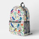 Elevate your style with this vibrant backpack adorned with stunning bird and flower patterns against a crisp white backdrop - a must-have accessory for any bird enthusiast or nature lover. watchers.
