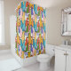 This shower curtain has a mid-century modern design of overlapping birds in flower power colours. Want different colours? Message me.