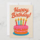 A bright and cheerful birthday design featuring a layered orange cake with pink icing, topped with five striped candles in vibrant colours. The bold red “Happy Birthday!” text above adds to the festive mood. The playful cut-out paper style and vivid colour palette make this design perfect for celebrations, greeting cards, and party invitations, bringing a fun and joyful energy to any birthday occasion.