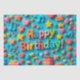Bright and cheerful arrangement of birthday elements including gifts, hearts, stars, and musical notes on a vibrant blue background, perfect for festive and celebratory themes.