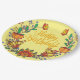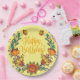 A Colourful Yellow And Orange Happy Birthday Floral Paper Plate With Folk Art Flowers