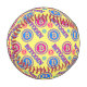 This eye-catching image showcases a repeating pattern featuring the word "BITCOIN" and the Bitcoin symbol (a stylised "B" with two vertical lines through it) in various colours. Set against a bright yellow background, the Bitcoin symbols and text are presented in blue, pink, and yellow circles. The diagonal arrangement of the elements creates a visually striking and colourful design, making this pattern perfect for use in wallpapers, promotional materials, or merchandise designs, celebrating the popular cryptocurrency, Bitcoin.