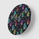 Colourful Black Butterfly Pattern Design Round Clock